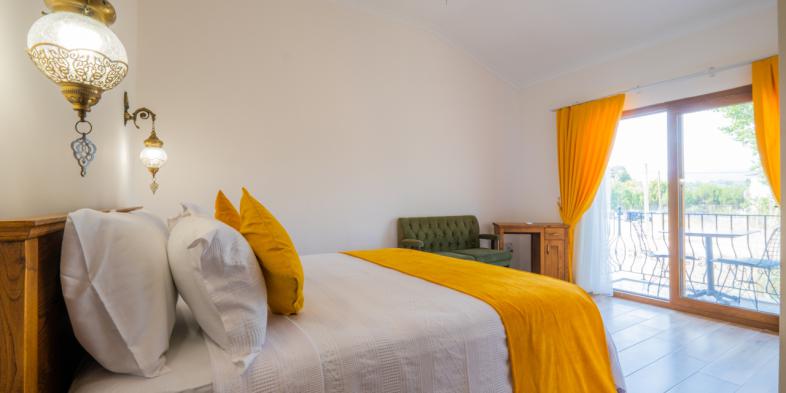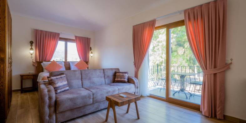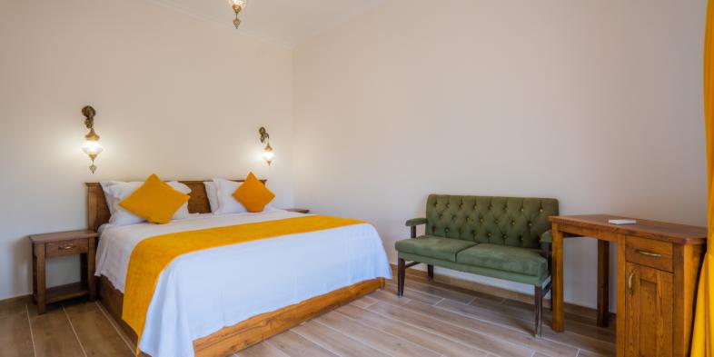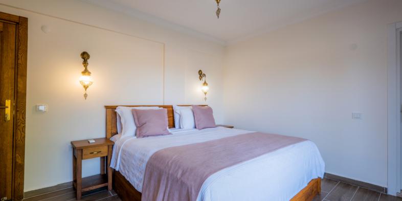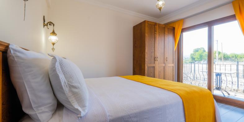 1 Adet King size çift kişilik yatak(280*300), Elbise dolabı, Makyaj masası, 2 Kişilik koltuk, Klima, Ensuit banyo ve balkonda masa ve sandalye takımı bulunmaktadır.