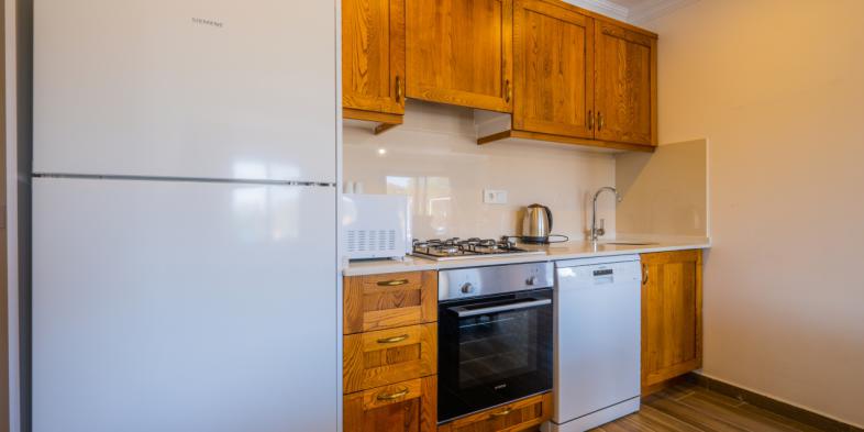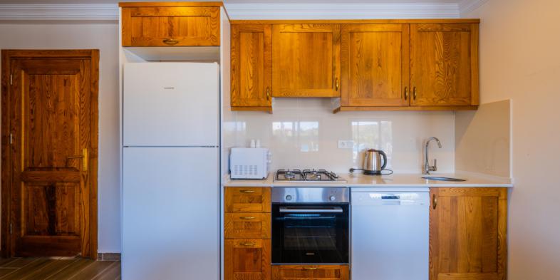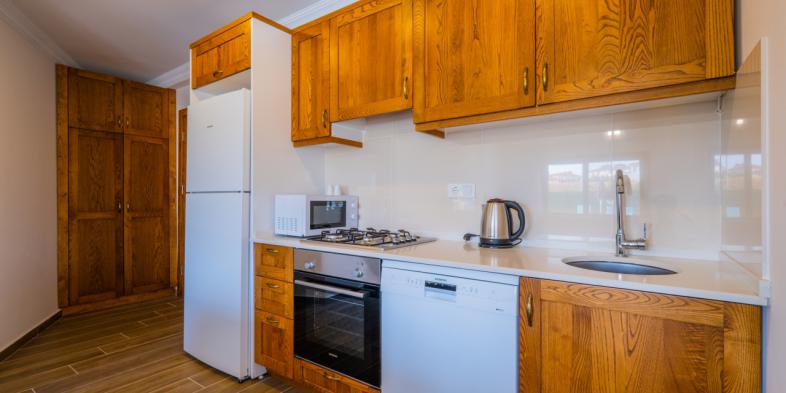 Açık mutfak olarak tasarlanmıştır. 12 Kişilik Yemek masası, Buzdolabı, Bulaşık makinesi, Kettle, Tost makinesi, Mikrodalga fırın, Ekmek Kızartma makinesi , 4’lü ocak, Ankastre fırın, Yemek takımı gibi tatiliniz süresince ihtiyaç duyabileceğiniz her türlü mutfak eşyası bulunmaktadır.