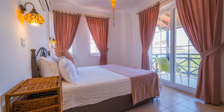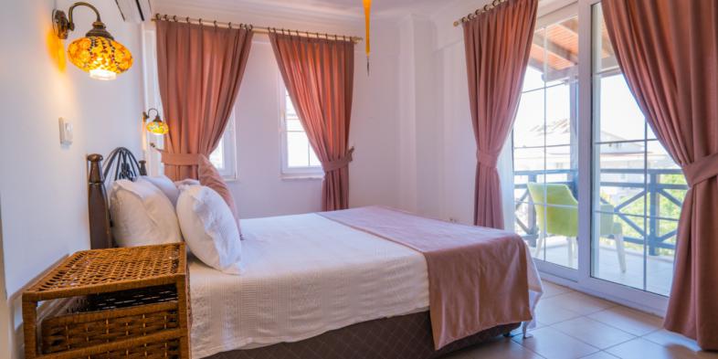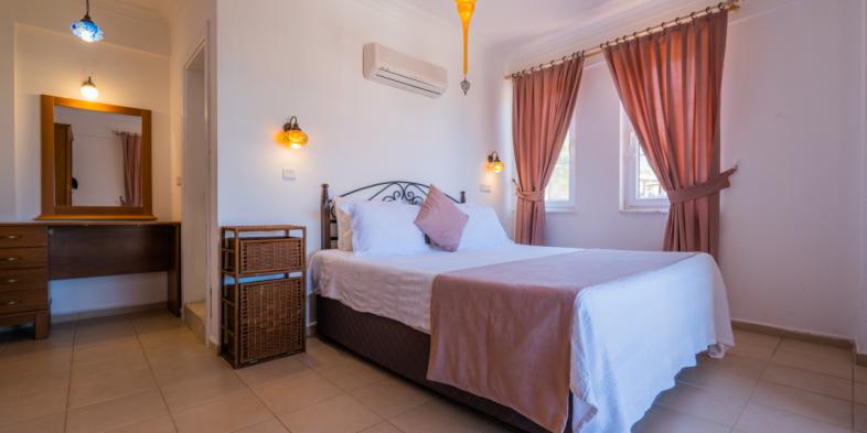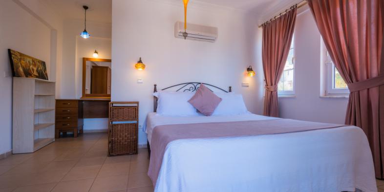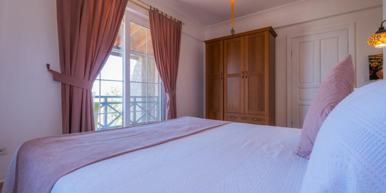 1 Adet King size çift kişilik yatak, Elbise dolabı, Makyaj masası, Klima, Ebeveyn banyosu ve Balkon bulunmaktadır.