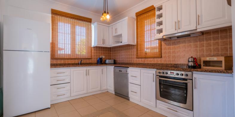 Açık mutfak olarak tasarlanmıştır. Buzdolabı, Bulaşık makinesi, Kettle, 4’lü ocak, Ankastre fırın, Yemek takımı gibi tatiliniz süresince ihtiyaç duyabileceğiniz her türlü mutfak eşyası bulunmaktadır. Not: Boy aynası bulunmaktadır.