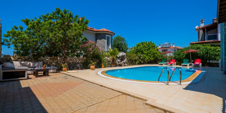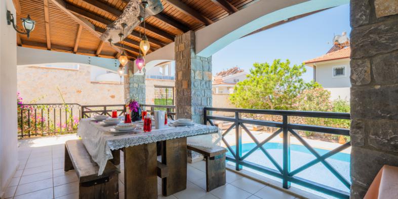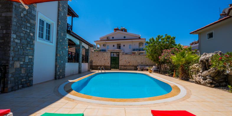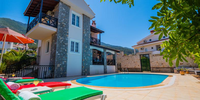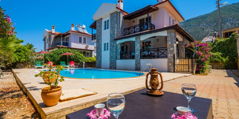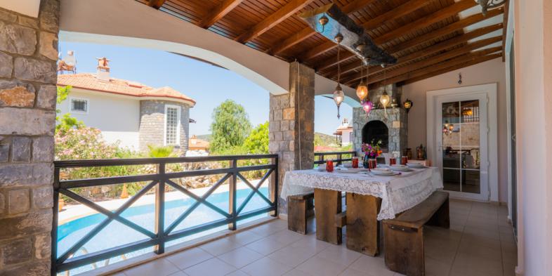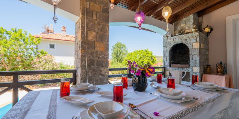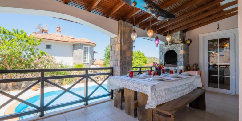 Located in Ovacık, Flora Villa has a wonderful forest and mountain view. It has a private swimming pool and a well-kept garden. The interior and exterior design of our villa makes our guests feel special. Our villa, which is intertwined with nature, is especially preferred for those who are overwhelmed by the noise of the city center. You can watch the magnificent view of Ovacık and Babadağ from the terrace floor of our triplex villa. You can enjoy the view of the pool on the veranda.