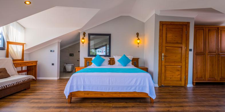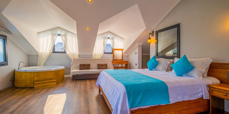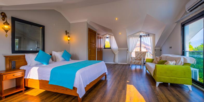 Calis Beach, with its deep blue long sea, will be close to you and it will be possible for a beach holiday that can be desired for the beach nearby. There are many bars and restaurants on Calis Beach. There is also a way to allow families with children to both take care of their children and spend the holiday. Enjoy a cold drink while swimming for your children. Kayaköy, Paspatur Bazaar, Fish Market, Fethiye city center and many of Fethiye’s many bays are the places you can visit and see in the settlement close to Calis.