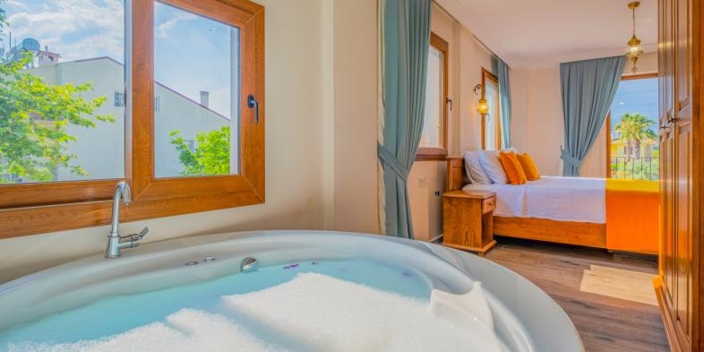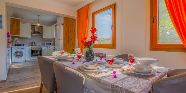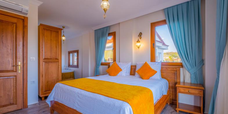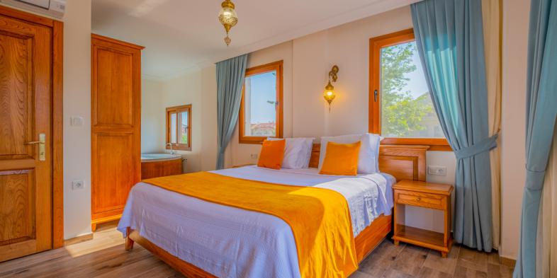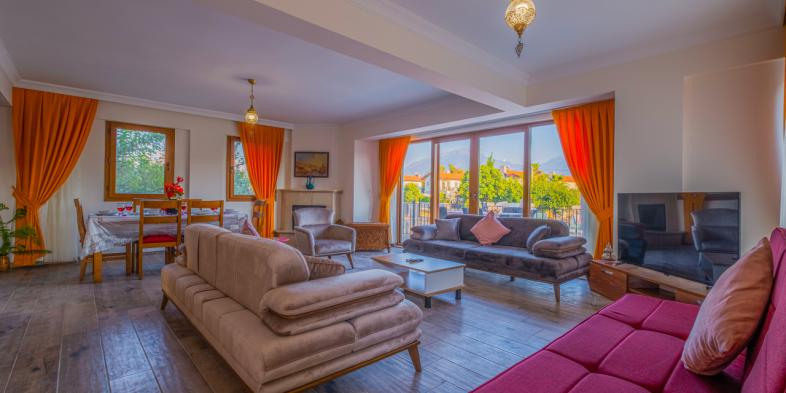 Calis Beach, with its deep blue long sea, will be close to you and it will be possible for a beach holiday that can be desired for the beach nearby. There are many bars and restaurants on Calis Beach. There is also a way to allow families with children to both take care of their children and spend the holiday. Enjoy a cold drink while swimming for your children. Kayaköy, Paspatur Bazaar, Fish Market, Fethiye city center and many of Fethiye’s many bays are the places you can visit and see in the settlement close to Calis.
