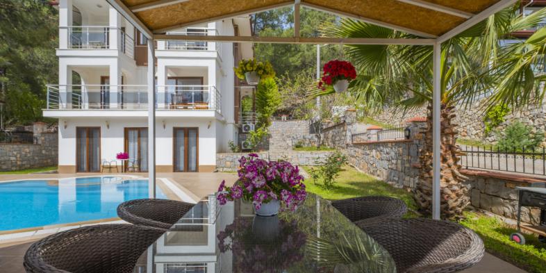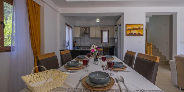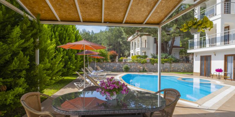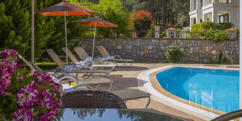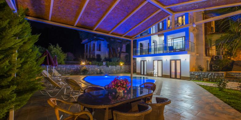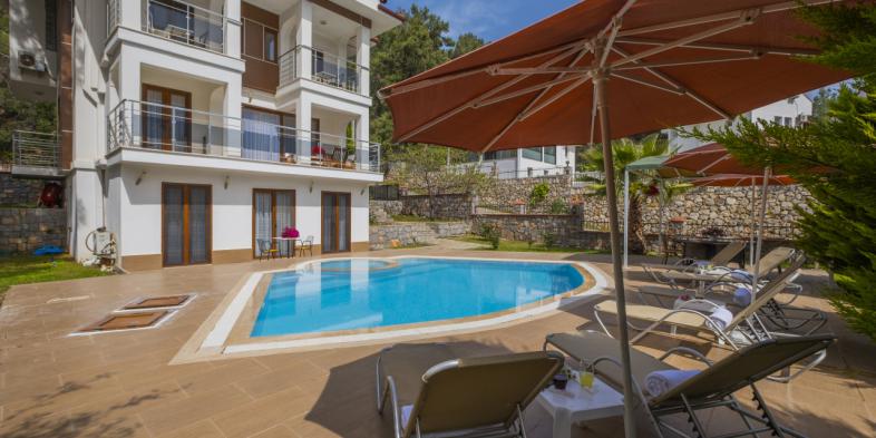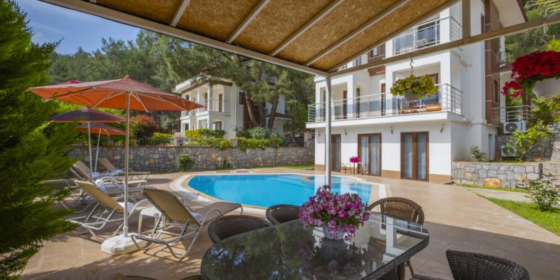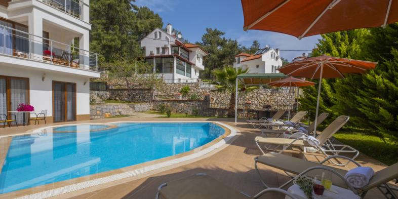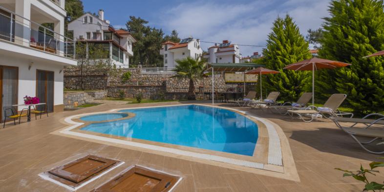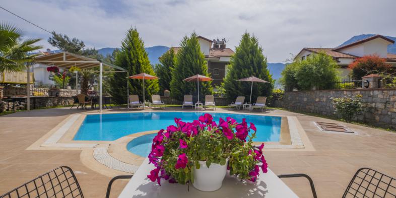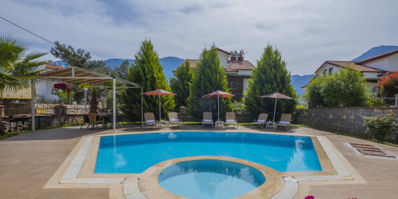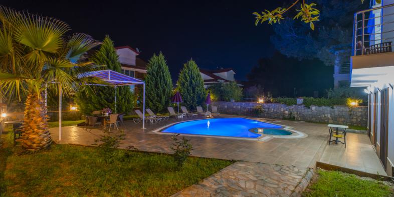 "Villa B2 was perfect loads of living space for a group of 10 plus more. A very comfortable enjoyable living space had by all. Villa B2 was clean and pool maintained by a gentleman every few days. We stayed for 2 weeks so during after our first week we had a full maid service cleaning whole villa and change of Linen and towels. Location was good 10mins walk into hisaronu and if u don’t fancy walking there’s a taxi call button at bottom of road where taxi come within 5 mins and only cost £3 (20tl) into town."