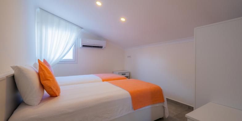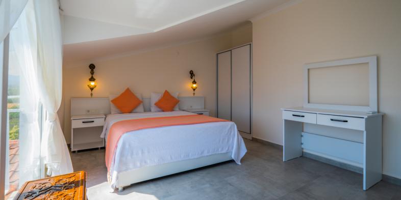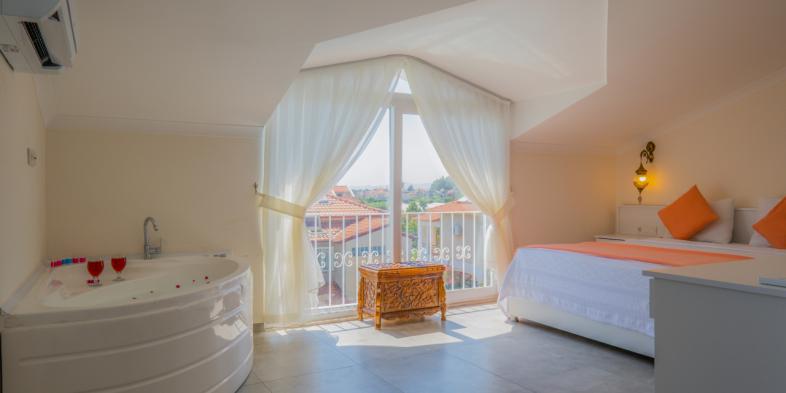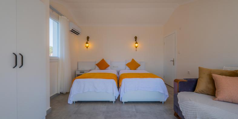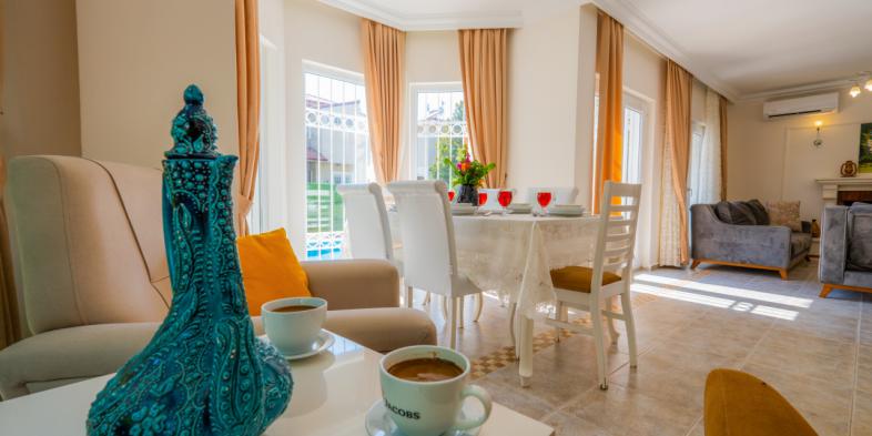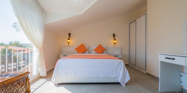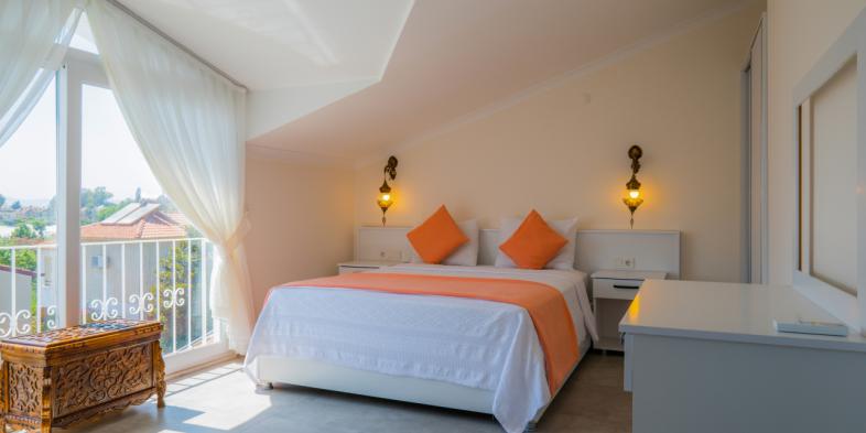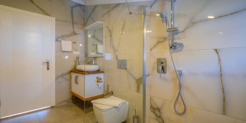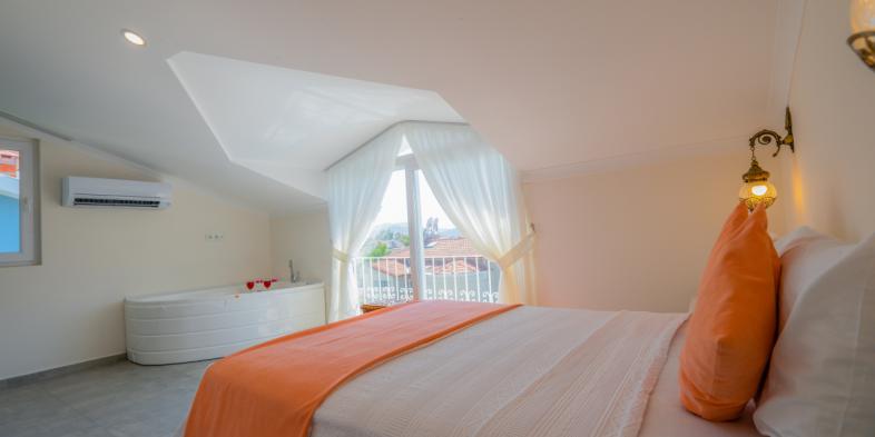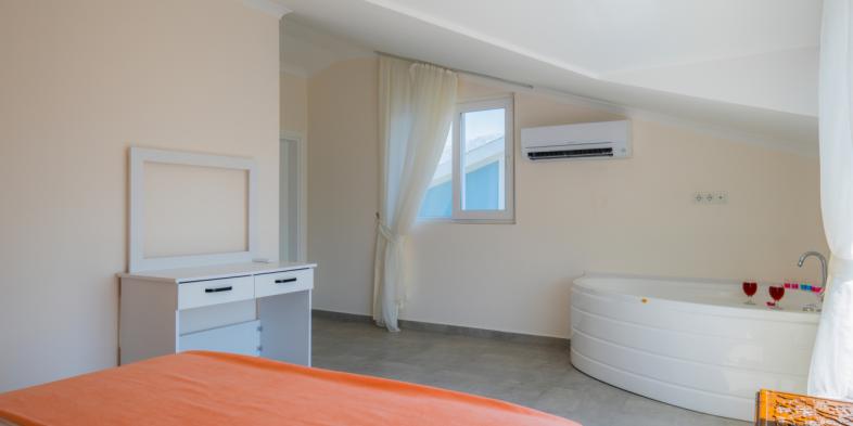For a unique holiday experience in Fethiye, Calis, if you want to experience a holiday where comfort and peace are felt at all times, you will find exactly what you are looking for in White Diamond Villa! White Diamond Villa has a capacity of twelve guests in five bedrooms. Each room of the villa, which has four bathrooms in total, is designed as a suite. There is a jacuzzi in one of the bedrooms in this unique villa, where every detail is included for your comfort.