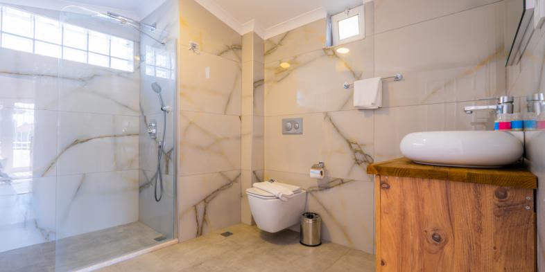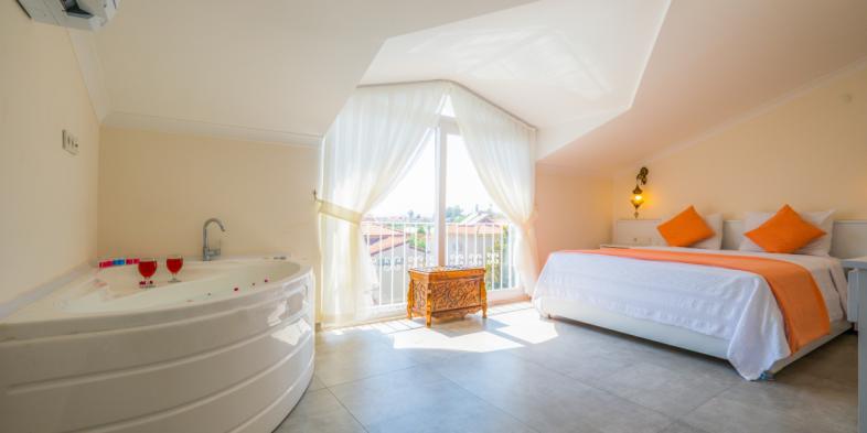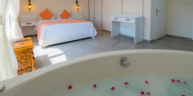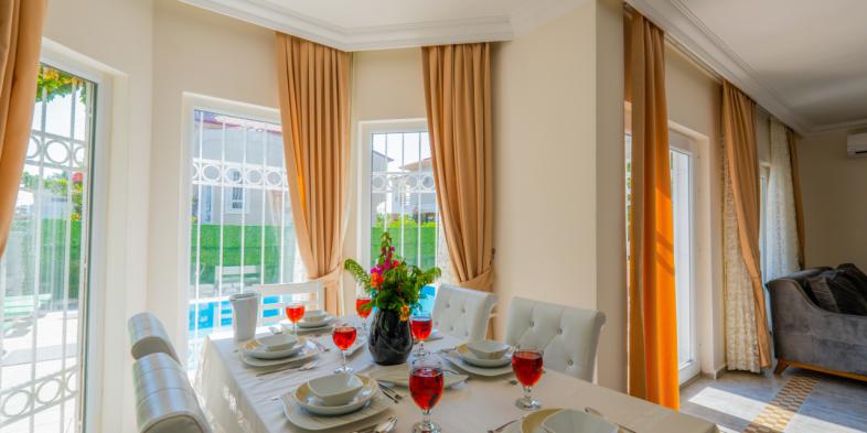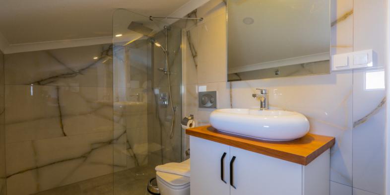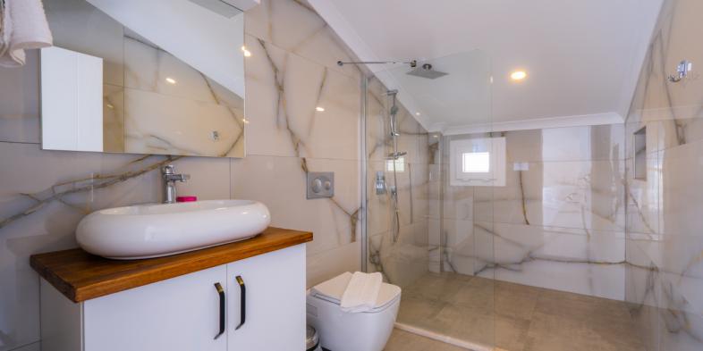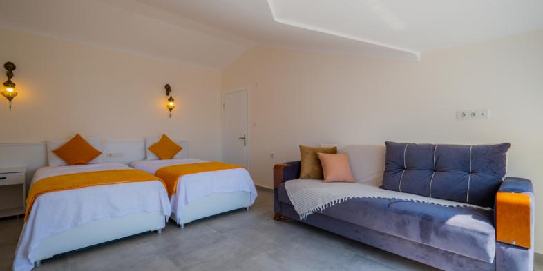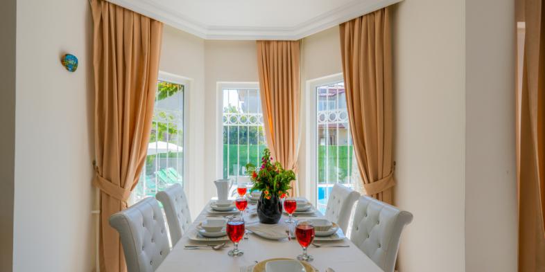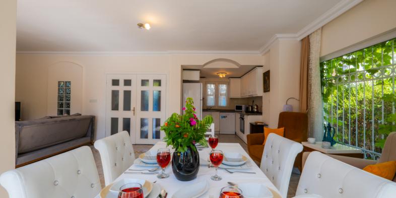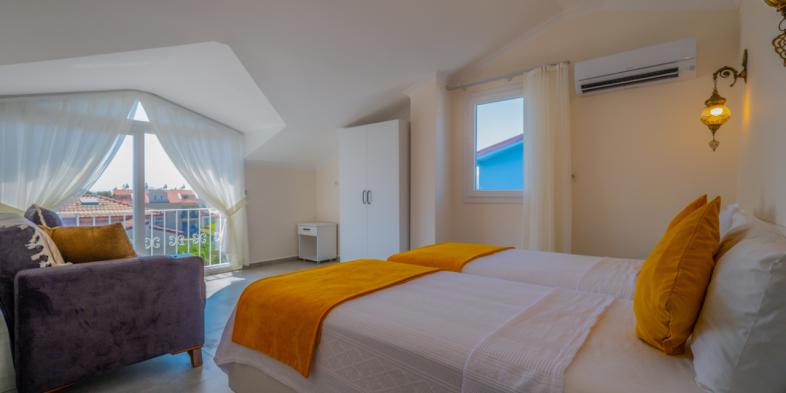 For a unique holiday experience in Fethiye, Calis, if you want to experience a holiday where comfort and peace are felt at all times, you will find exactly what you are looking for in White Diamond Villa! White Diamond Villa has a capacity of twelve guests in five bedrooms. Each room of the villa, which has four bathrooms in total, is designed as a suite. There is a jacuzzi in one of the bedrooms in this unique villa, where every detail is included for your comfort.