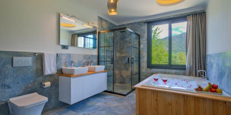 3 adet banyo (2 tanesi En Suite, 1 tanesi genel banyo)+1 Jakuzzi + 3 WC (1 tanesi genel WC)