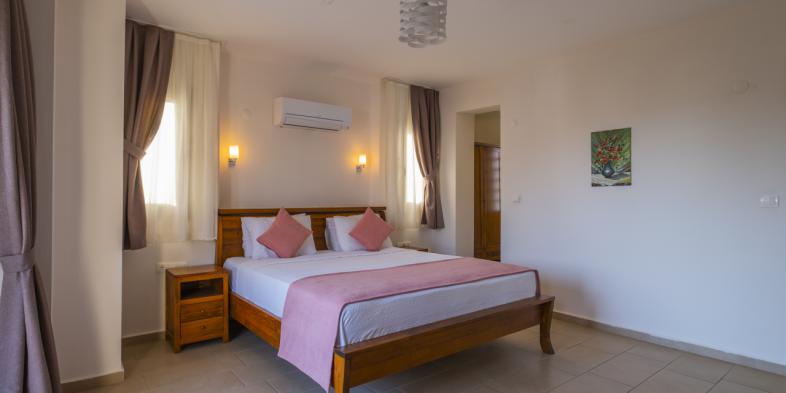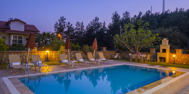 Opal Villanın kendine ait havuzu, bahçesi ve 4 adet yatak odası ile 10 kişilik konaklama kapasitesine sahiptir. Konforlu odaları ile geniş aileler ve kalabalık gruplar için idealdir. Aileniz veya arkadaşlarınız ile geniş bahçe alanında günün keyfini çıkarabilir ve barbekü olanağımız ile akşam yemeğinizin tadını çıkarabilecek bir tatil sunmaktadır. Konforlu mobilyalara sahip villamız, sizin için özen ile seçilmiştir.