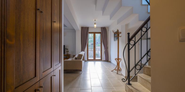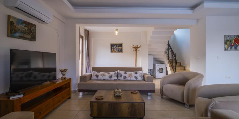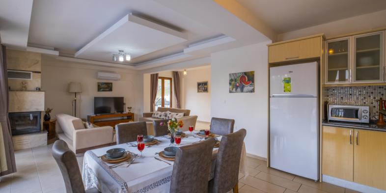 Açık mutfak planlıdır ve 1 adet şömineli büyük salonu (oturma odası) vardır.